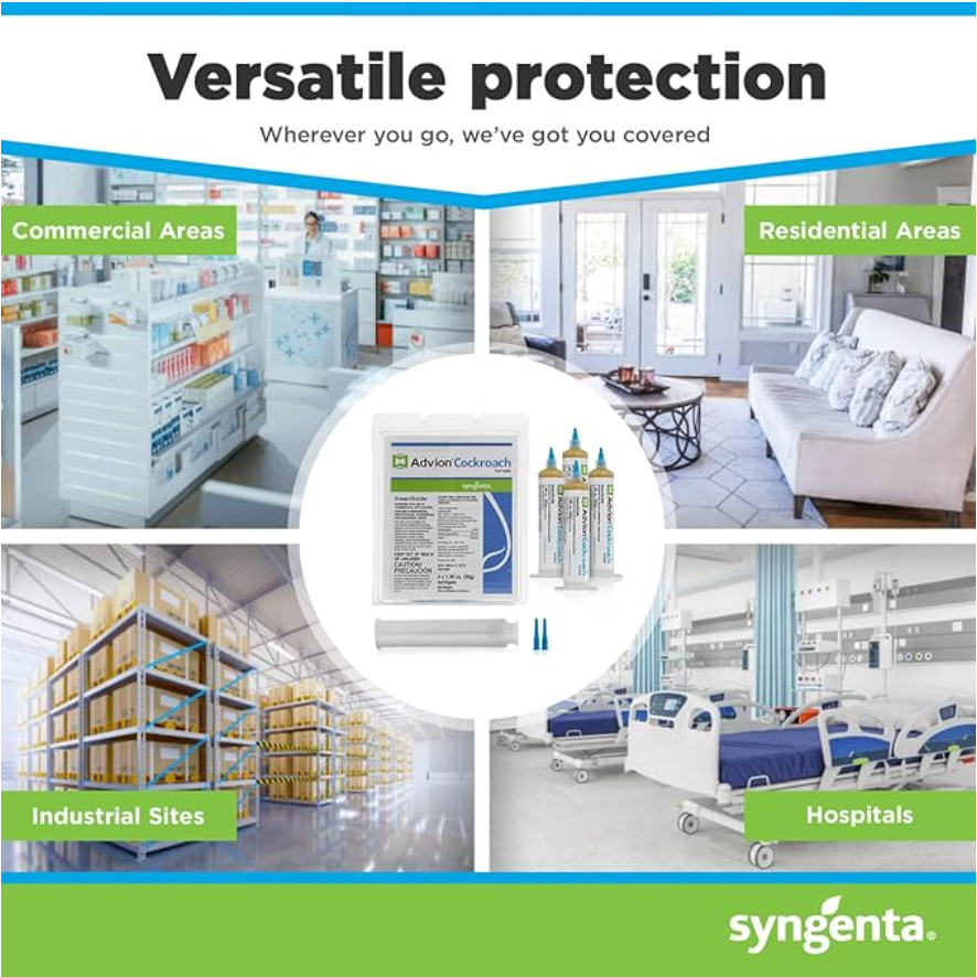 - COCKROACH CONTROL: Advion Cockroach gel bait from Syngenta is a high-performing bait product targeting many pest species of cockroaches including German, American and gel bait-averse cockroaches. It’s formulated with 0.6% indoxacarb, which is a potent, non-repellent active ingredient used for trusted pest control.